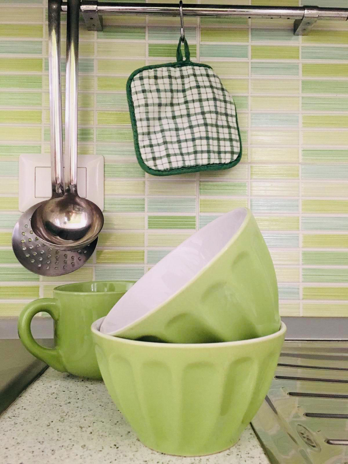 L'interno della villetta è arredato con gusto e praticità, con un tocco di verde che richiama la natura circostante. L'ingresso si apre su un soggiorno luminoso e confortevole, dotato di TV e di aria condizionata. La cucina è completamente attrezzata con piatti, pentole, stoviglie e forno, per permettervi di preparare i vostri piatti preferiti durante la vacanza.