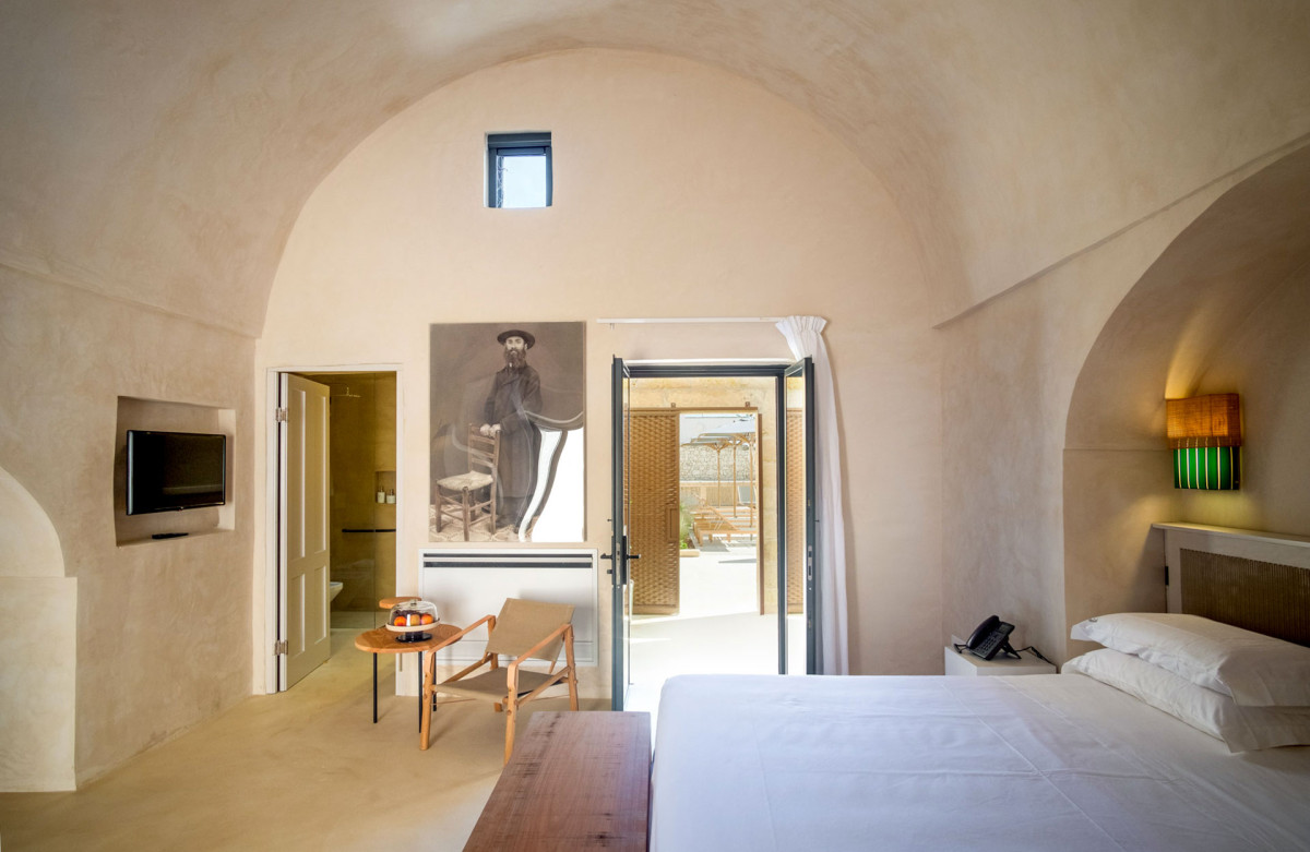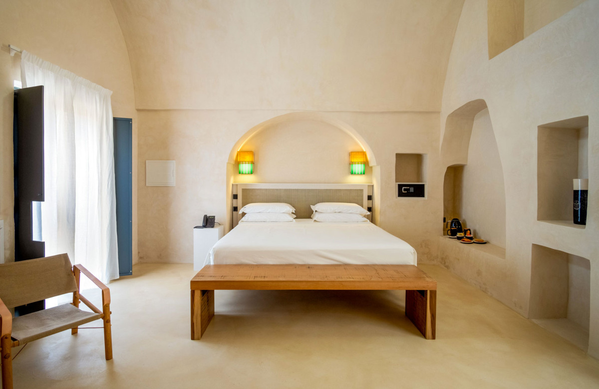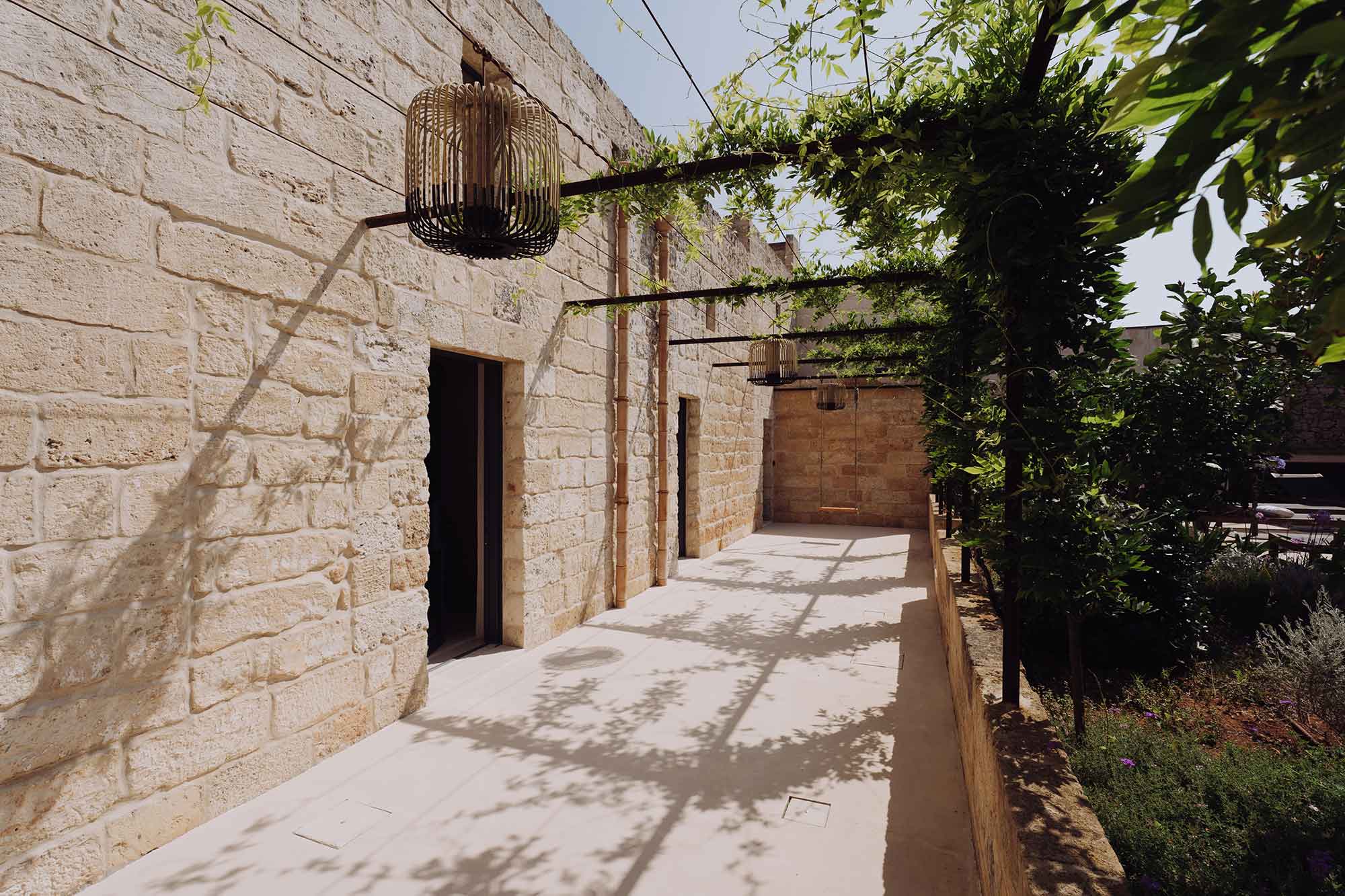 Le camere e suite di I Tre Bacili sono concepite per valorizzare la tipicità salentina attraverso spazi essenziali e materiali naturali, unendo storia e comfort contemporaneo.