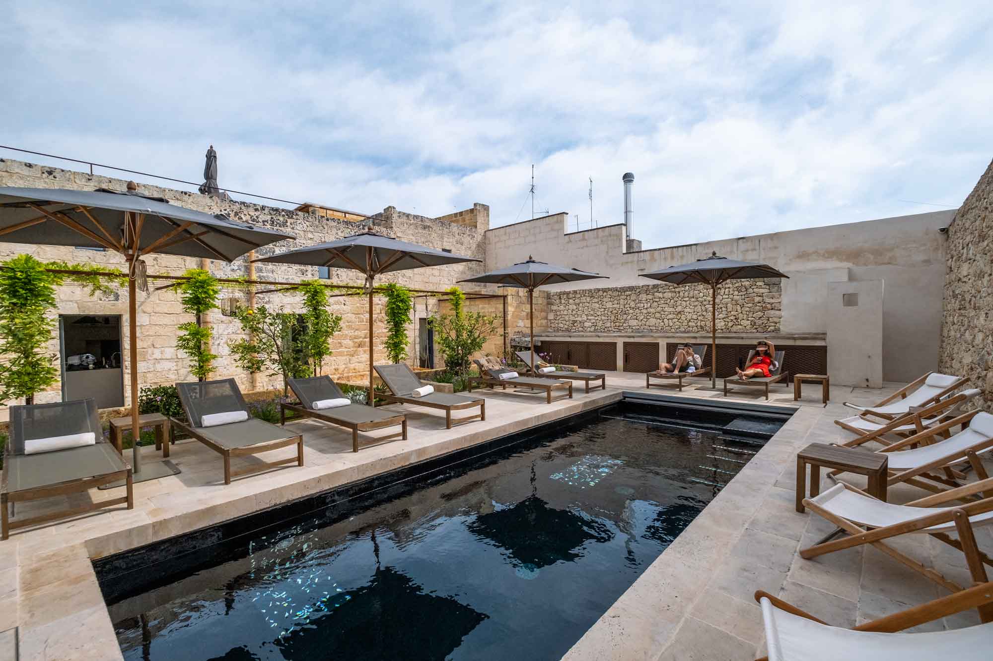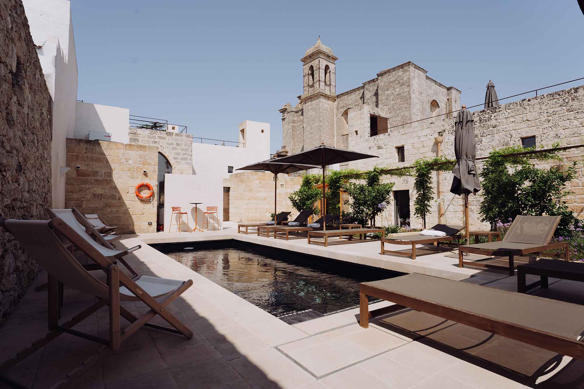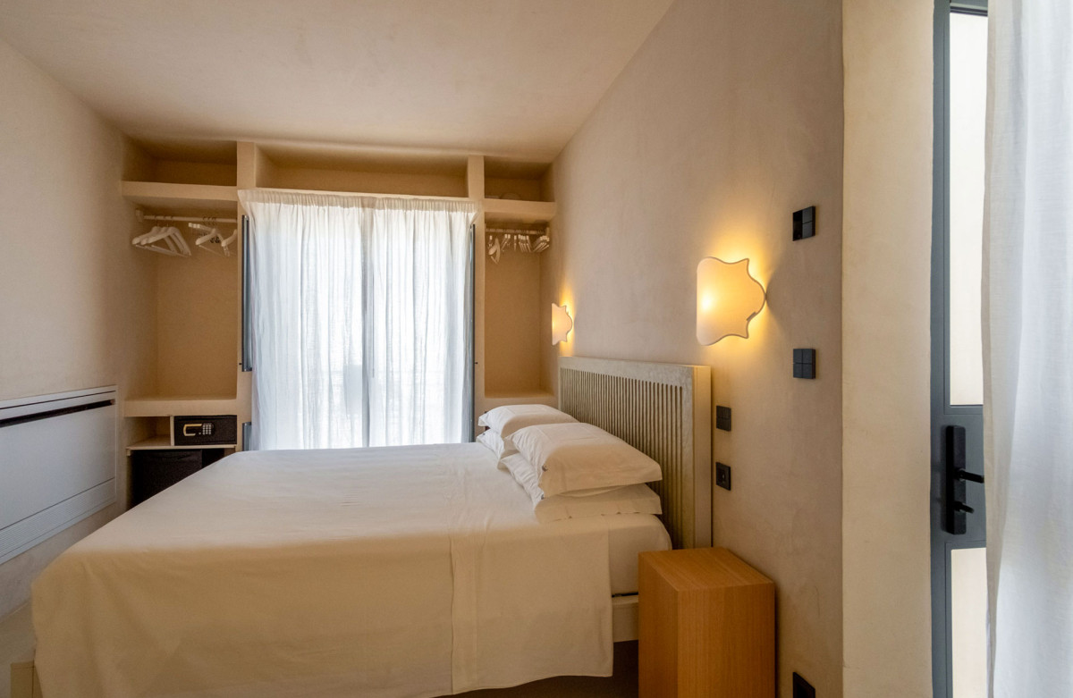 Le camere e suite di I Tre Bacili sono concepite per valorizzare la tipicità salentina attraverso spazi essenziali e materiali naturali, unendo storia e comfort contemporaneo.