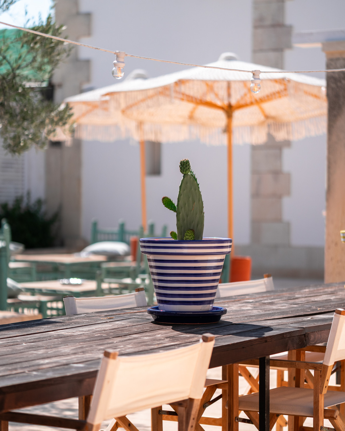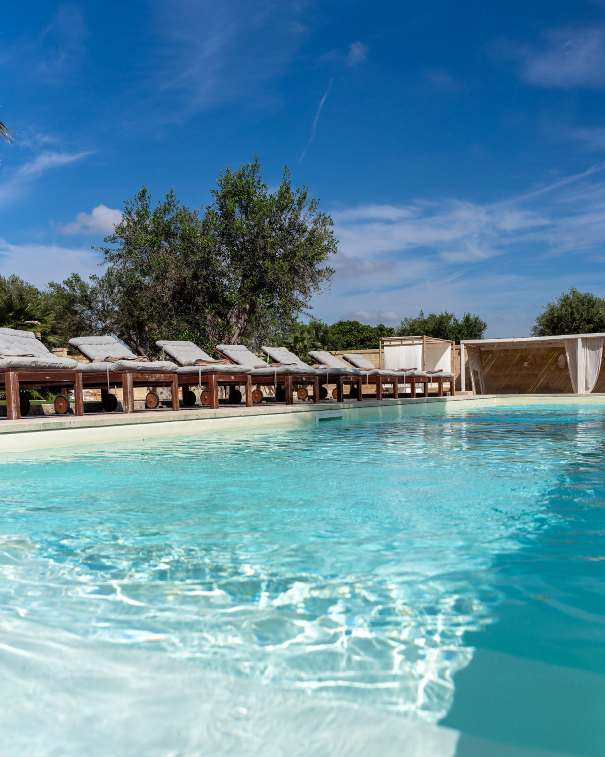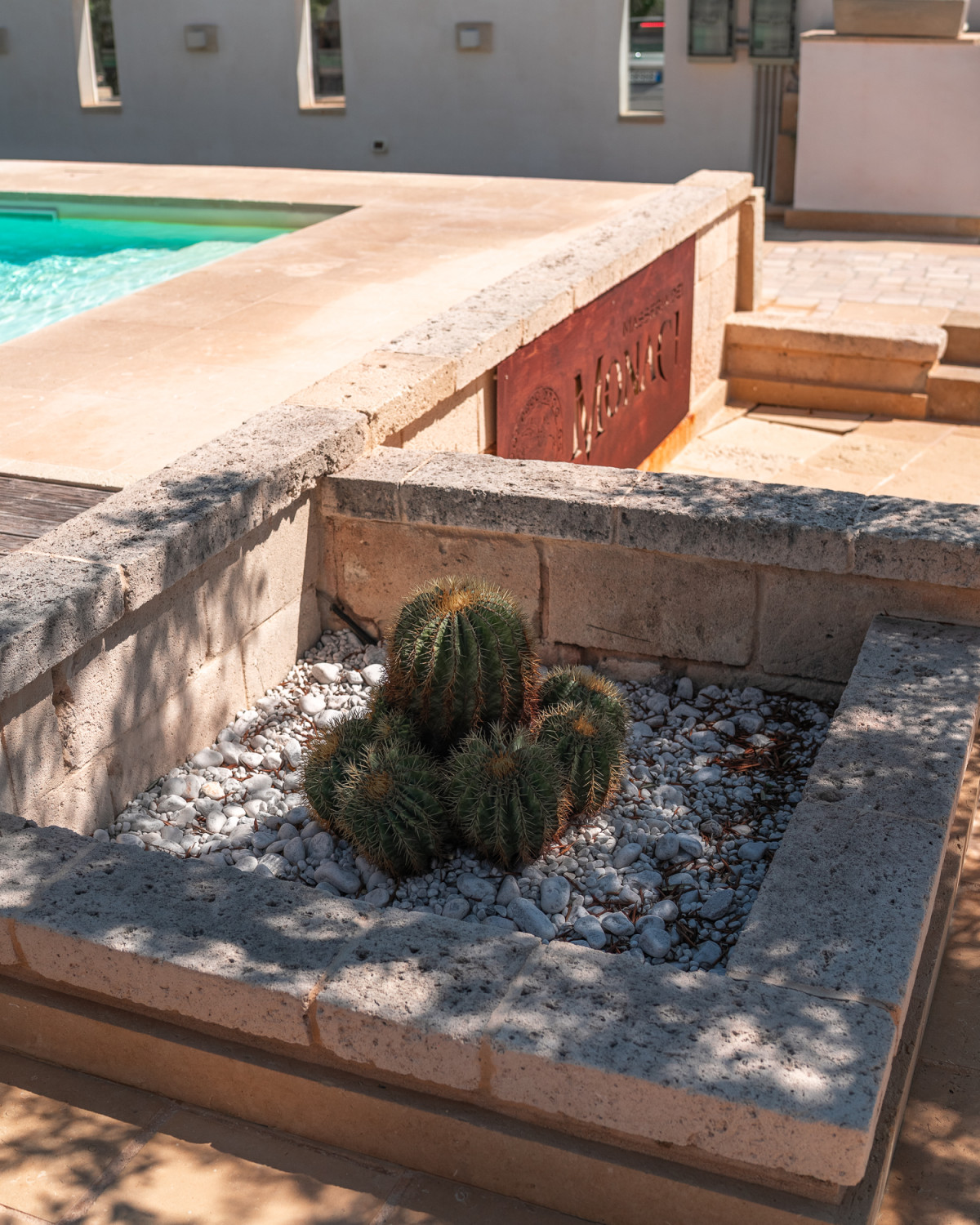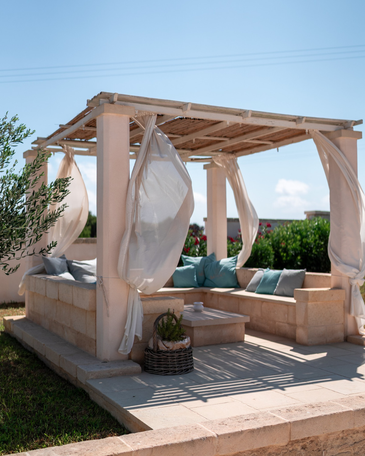 La struttura dispone di camere e suite arredate con gusto, ognuna diversa dall’altra, dove materiali naturali e dettagli della tradizione salentina si fondono con comfort moderni.