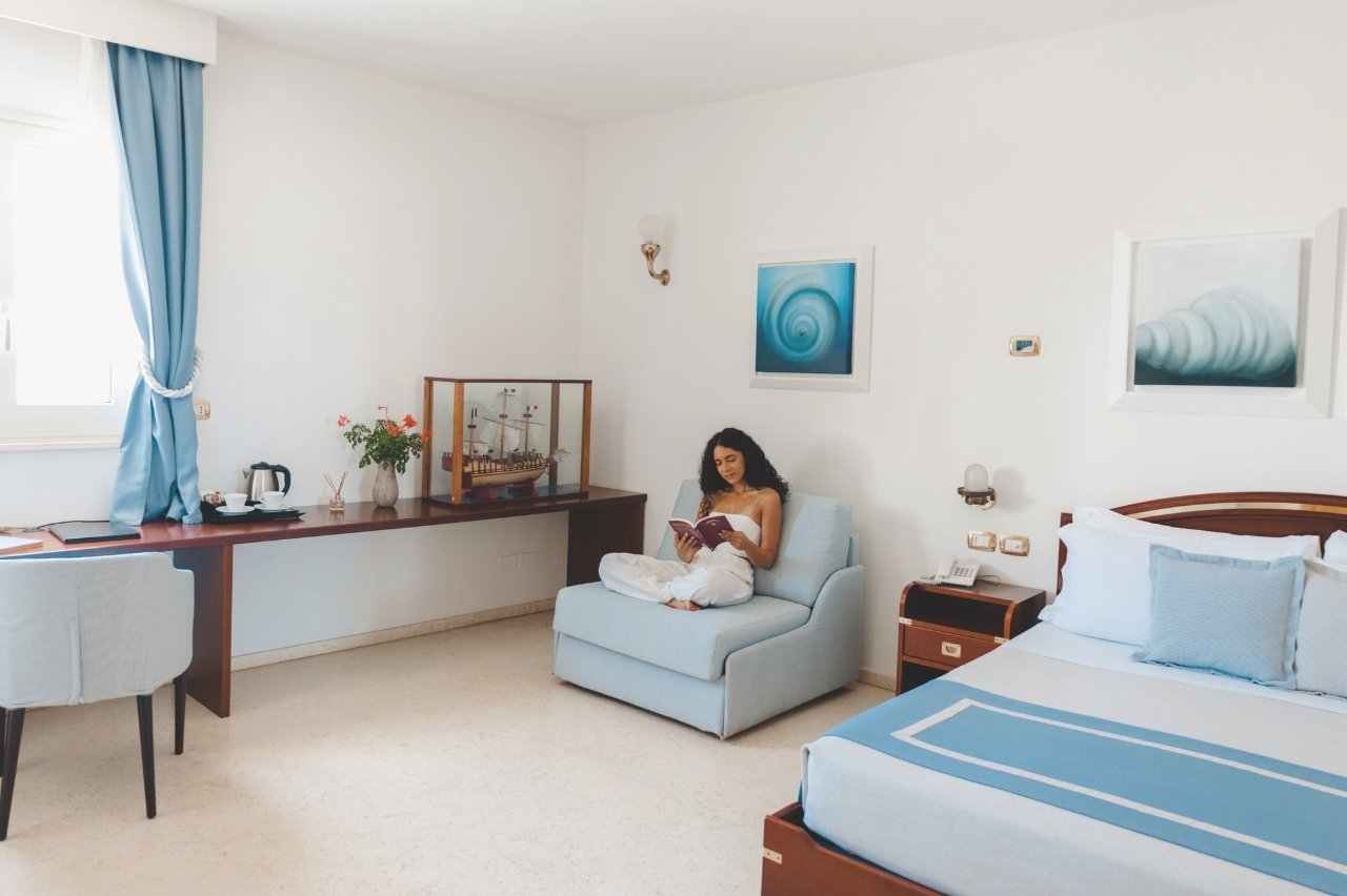 L’hotel Corte di Nettuno ad Otranto accoglie i propri ospiti in 28 confortevoli camere Classic da 2 a 4 posti letto composte da un unico ambiente; dotate di tutti i comforts: wi-fi, aria condizionata, cassetta di sicurezza, mini bar, doccia e divano letto per terzo e quarto letto.