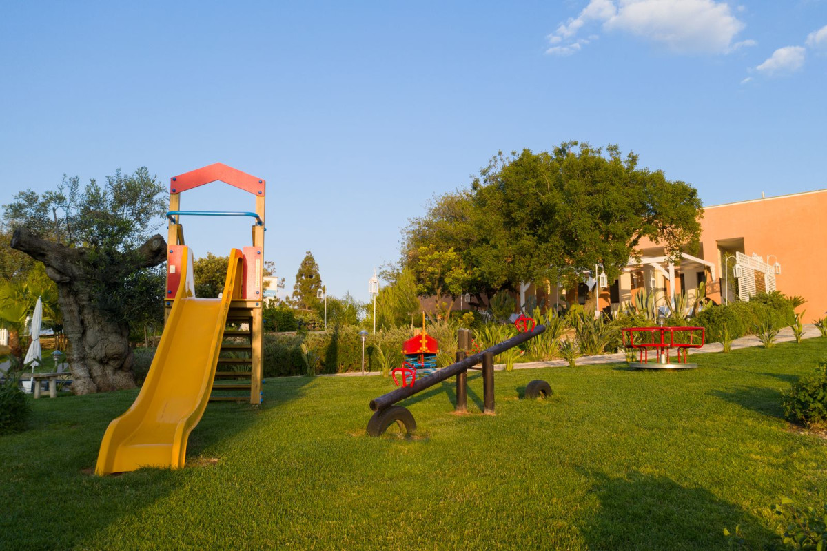 di sabbia fine e con fondale che digrada dolcemente, a circa 2 km. Servizio spiaggia include un ombrellone e due lettini per camera. Servizio navetta per raggiungere la spiaggia ad orari prestabiliti.