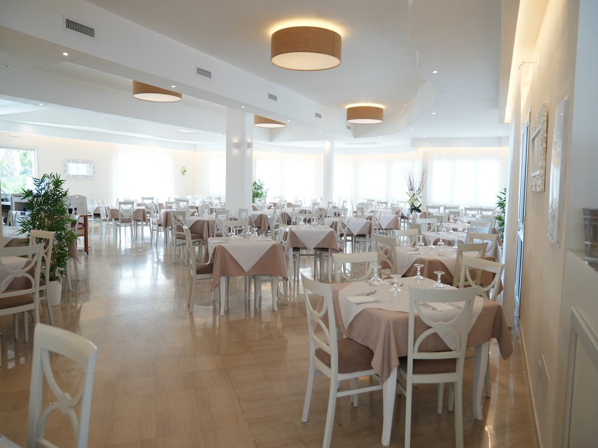 All'interno del villaggio è presente un ristorante climatizzato, dove è possibile gustare piatti della cucina pugliese e nazionale. È disponibile anche un bar all’aperto per colazioni, aperitivi o snack in relax, oltre a una sala TV per momenti di svago. Cucina regionale e nazionale con ampio uso di prodotti freschi e a km 0. Colazione continentale 07:30‐09:30 (chi non riesce a fare colazione al ristorante possibilità senza supplemento di usufruirne al bar in piscina), Pranzo servito al tavolo 13:00‐14:30, Cena servita al tavolo 20:00‐21:30. Il soggiorno inizia con la cena del giorno di arrivo e si termina con la colazione del giorno di uscita. Per gli Ospiti con intolleranze alimentari prima fornitura di alimenti di base, su richiesta con supplemento. Non garantita la non contaminazione.