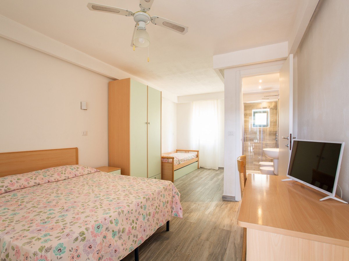 Trilo 3/4 posti letto (circa 34 m²): soggiorno-pranzo, camera matrimoniale, cameretta con letto a castello, bagno, veranda.